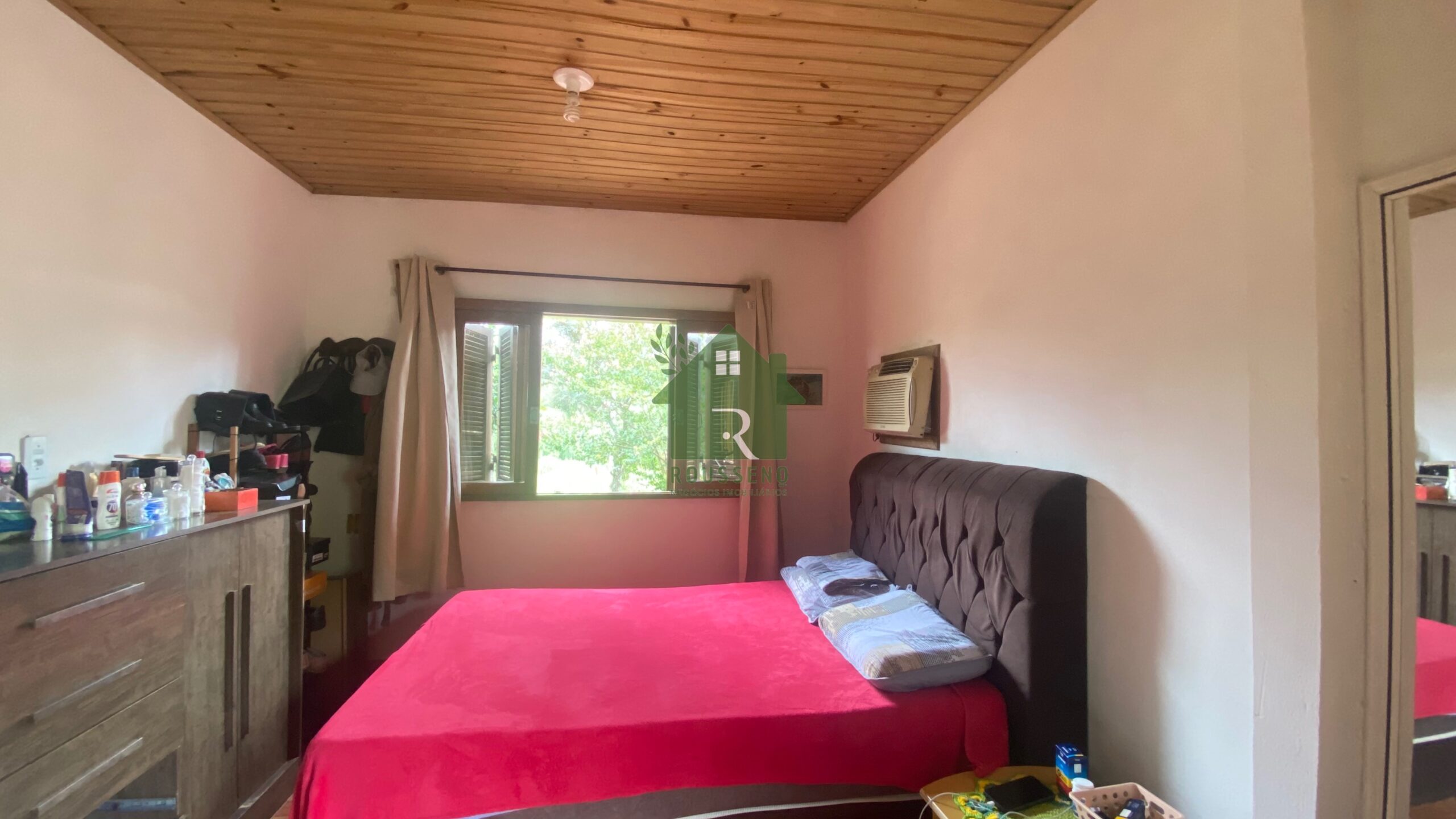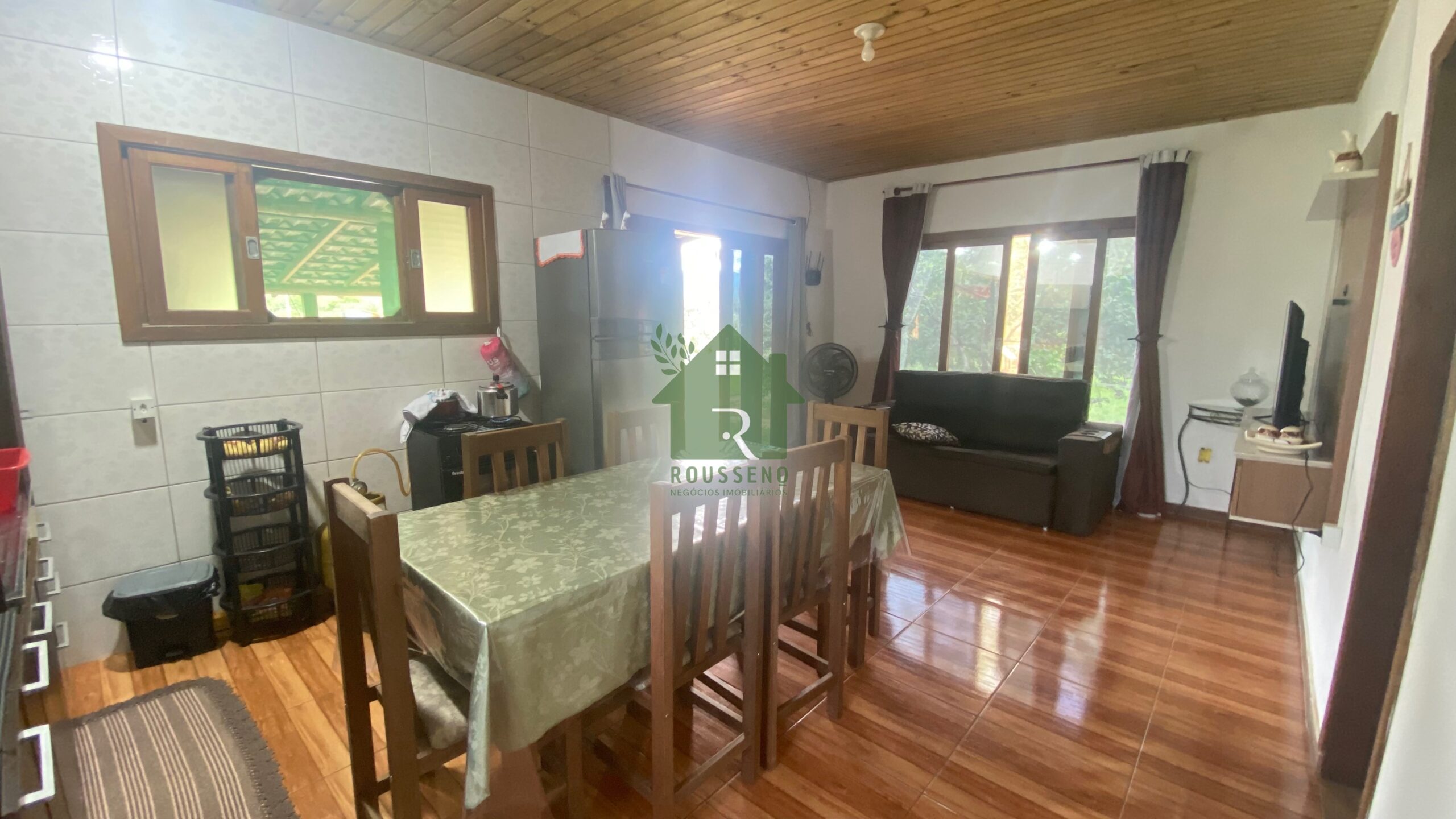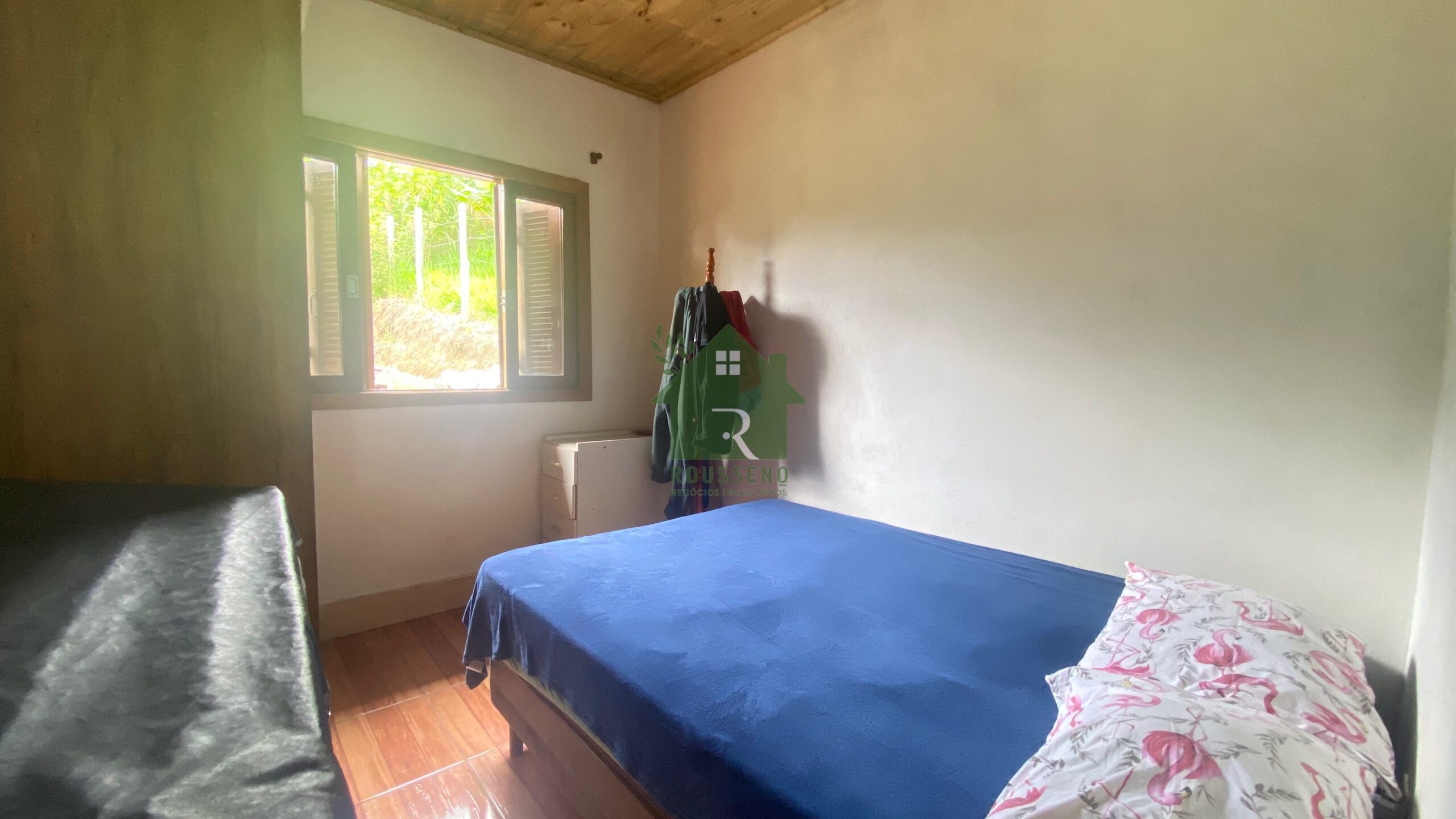 A casa: 100m² em alvenaria, com 2 quartos, 1 banheiro, sala e cozinha conjugadas, área de serviço e garagem para 1 carro.