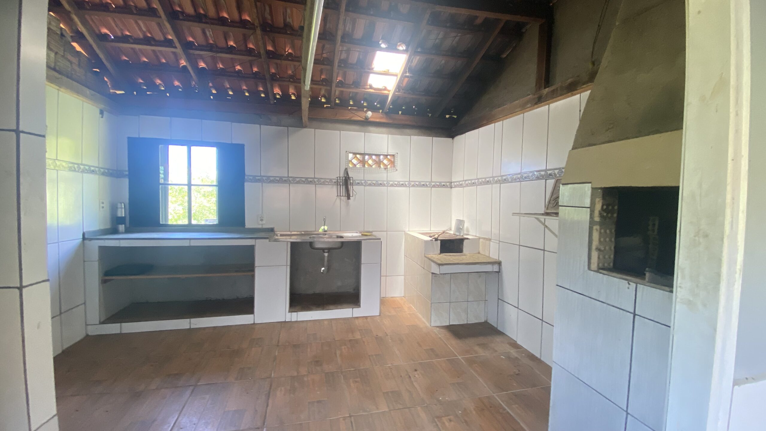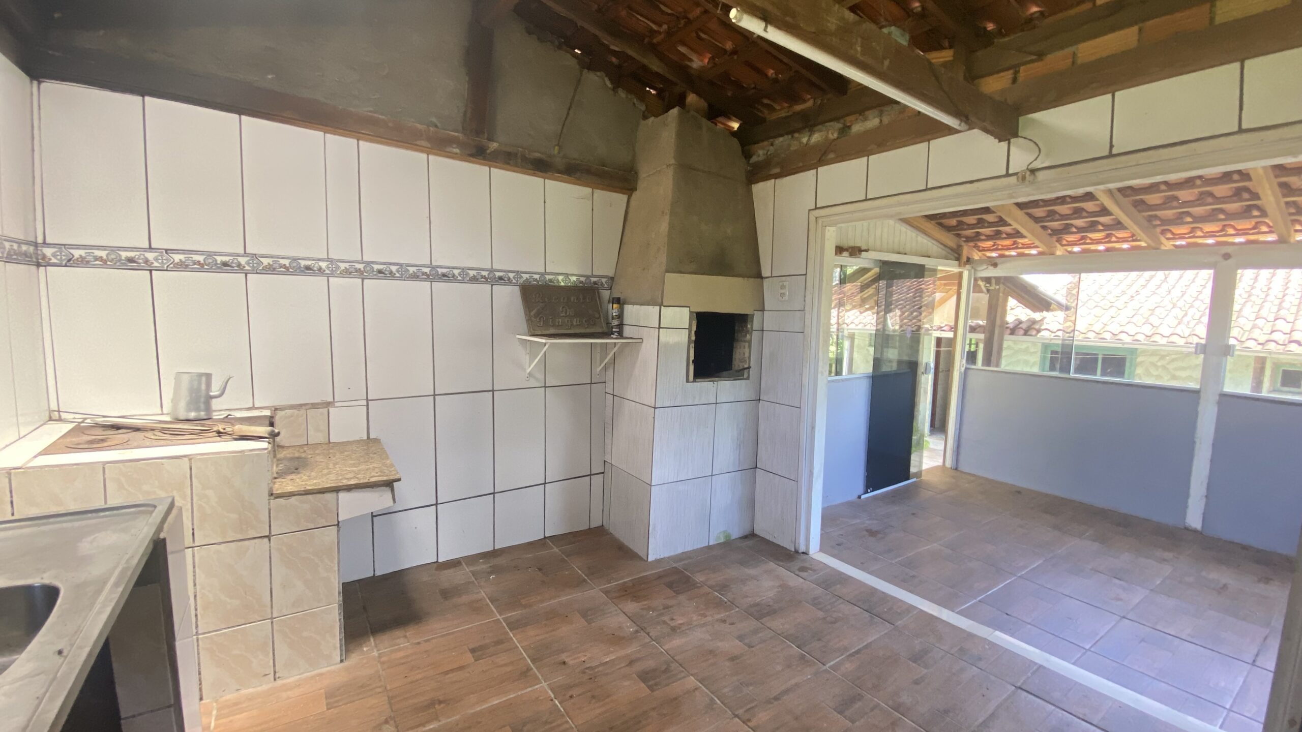 Edícula: churrasqueira, fogão à lenha